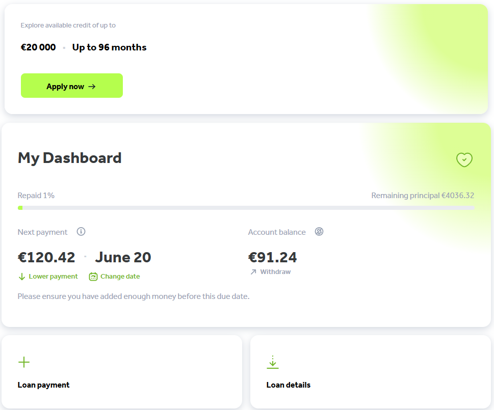 When you log in to your account, you will see all the most important payment information right at the top of your screen.