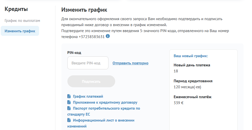 Если Вы желаете запросить новый график платежей, это можно сделать с помощью услуги B Secure.