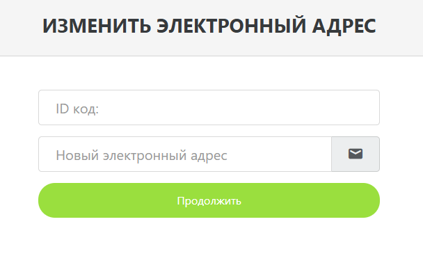- На странице введите персональный идентификационный номер и новый адрес электронной почты, к которому Вы имеете доступ. Убедитесь, что электронный адрес, введенный Вами, верен.