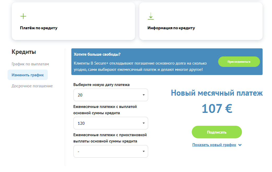 Если Вы желаете запросить новый график платежей, это можно сделать с помощью услуги B Secure.
